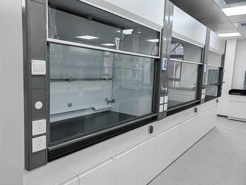 2)燈光:主要采用弧形綠色建筑孔燈,自動隱藏于頂板上,不與排風柜中科學實驗操作固體就直接碰觸,易調整,色溫完全性滿足需要科學實驗操作規定。